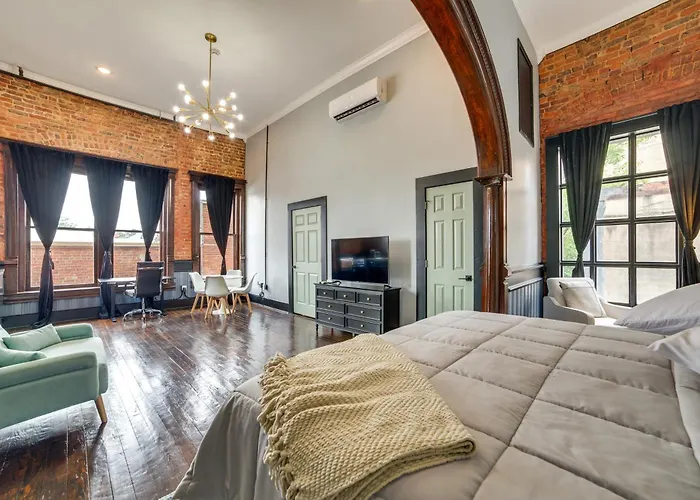 This spacious Explore Downtown Marshall Historic Studio Getaway lies next to Texas and Pacific Railway Museum.